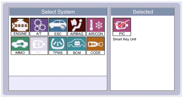 2. Select the vehicle model and then SMART KEY system.