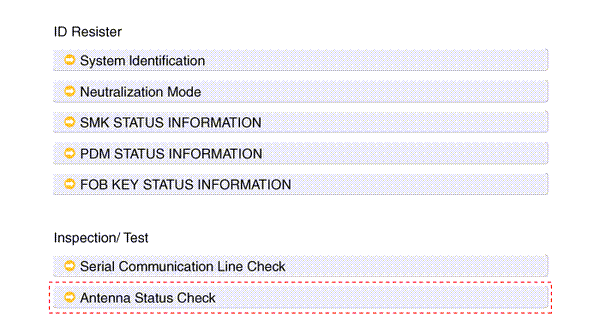 3. After IG ON, select the "Antenna Status Check".
