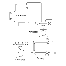 alternator and the (-) lead wire of ammeter to the output wire. Connect