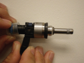 Any coking of the injector sealing surface must be carefully removed with a brass-wire brush.