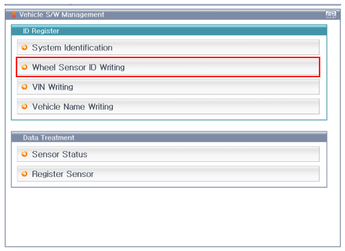 [Wheel Sensor ID Writing (Wireless) initialization]