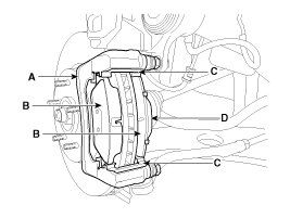 | 2. | Replace pad shim (D), pad retainers