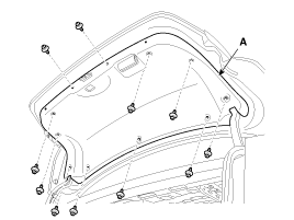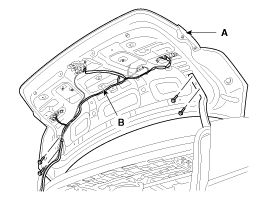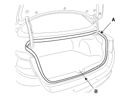 hinge (A) mounting bolt, adjust the trunk lid by moving it up or down, or