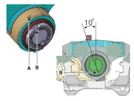 Make sure that the piston groove (B) is rotated 10° and faces the