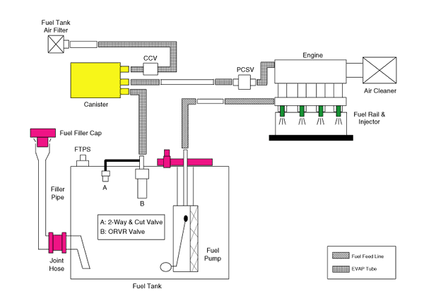 Description The Evaporative Emission Control System prevents fuel vapor stored in fuel tank from vaporizing into the atmosphere. When the fuel evaporates in the fuel tank, the vapor passes thro ...