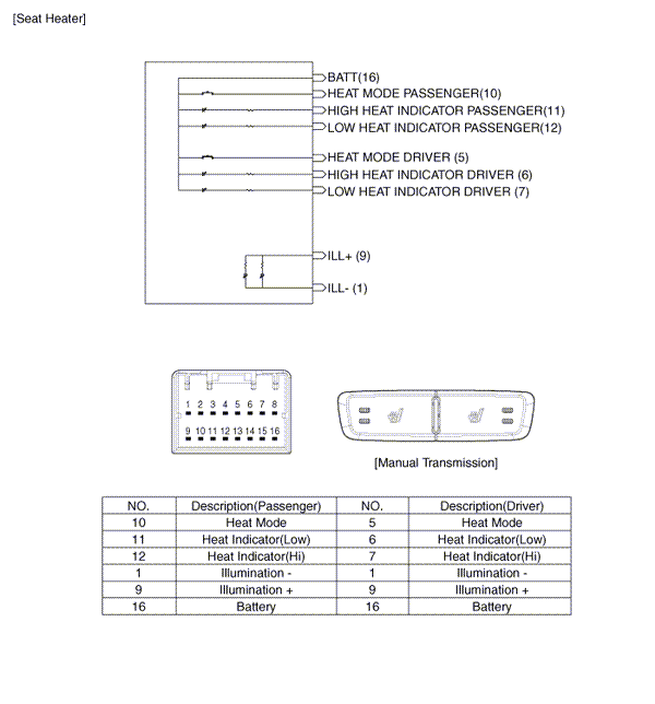 Kia Optima: Seat Heater Switch. Schematic DiagramsCircuit Diagram