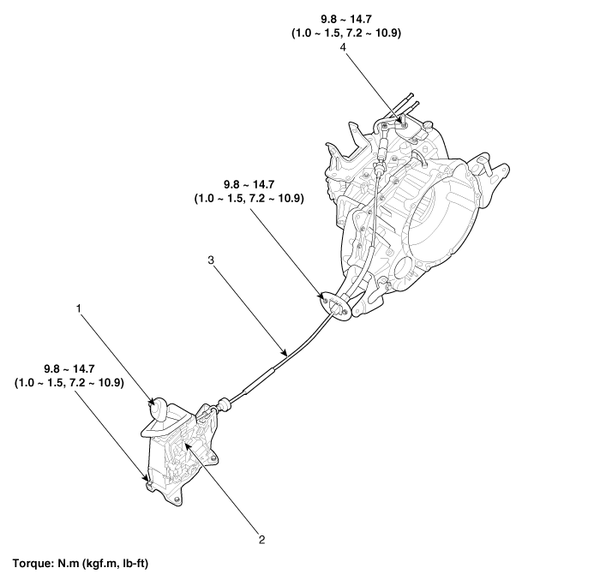 3. Control cable assembly 4. Manual control lever (T/M side) |