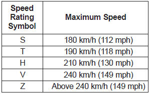 The chart below lists many of the different speed ratings currently being used for passenger vehicles. The speed rating is part of the tire size designation on the sidewall of the tire. This symbol corresponds to that tire's designed maximum safe operating speed.