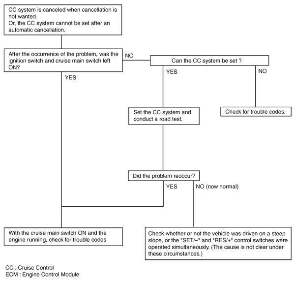 The set vehicle speed varies greatly upward or downward "Surging" (repeated alternating acceleration and deceleration) occurs after setting |