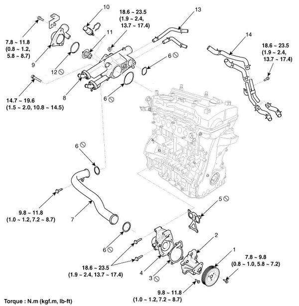Kia Optima: Water pump. Components and Components Location - Cooling System - Engine Mechanical System - Kia Optima TF 2011-2025 Service ManualKia Optima: Water pump. Components and Components Location