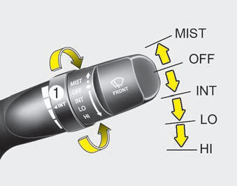 In this position, the wiping intervals are also varied automatically depending on your vehicle speed. (if equipped)